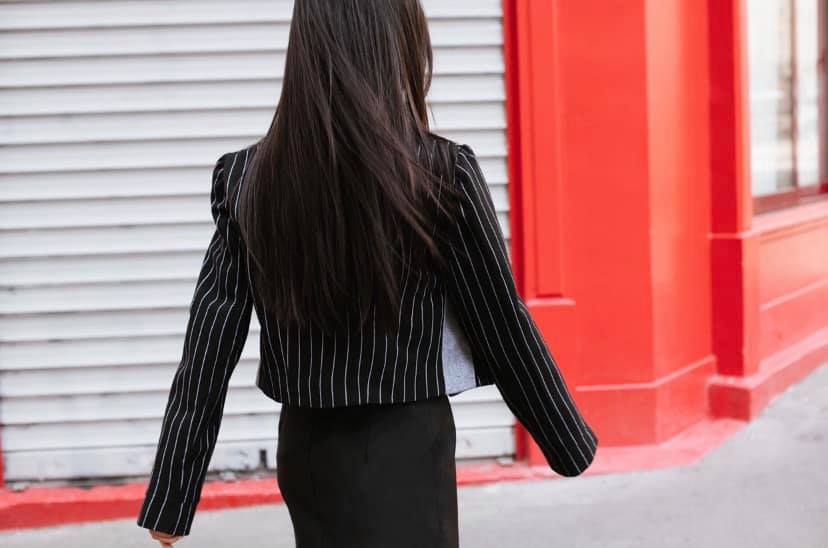 "Magadi", a Ler Ligisa short jacket with black and grey stripes, casual chic.